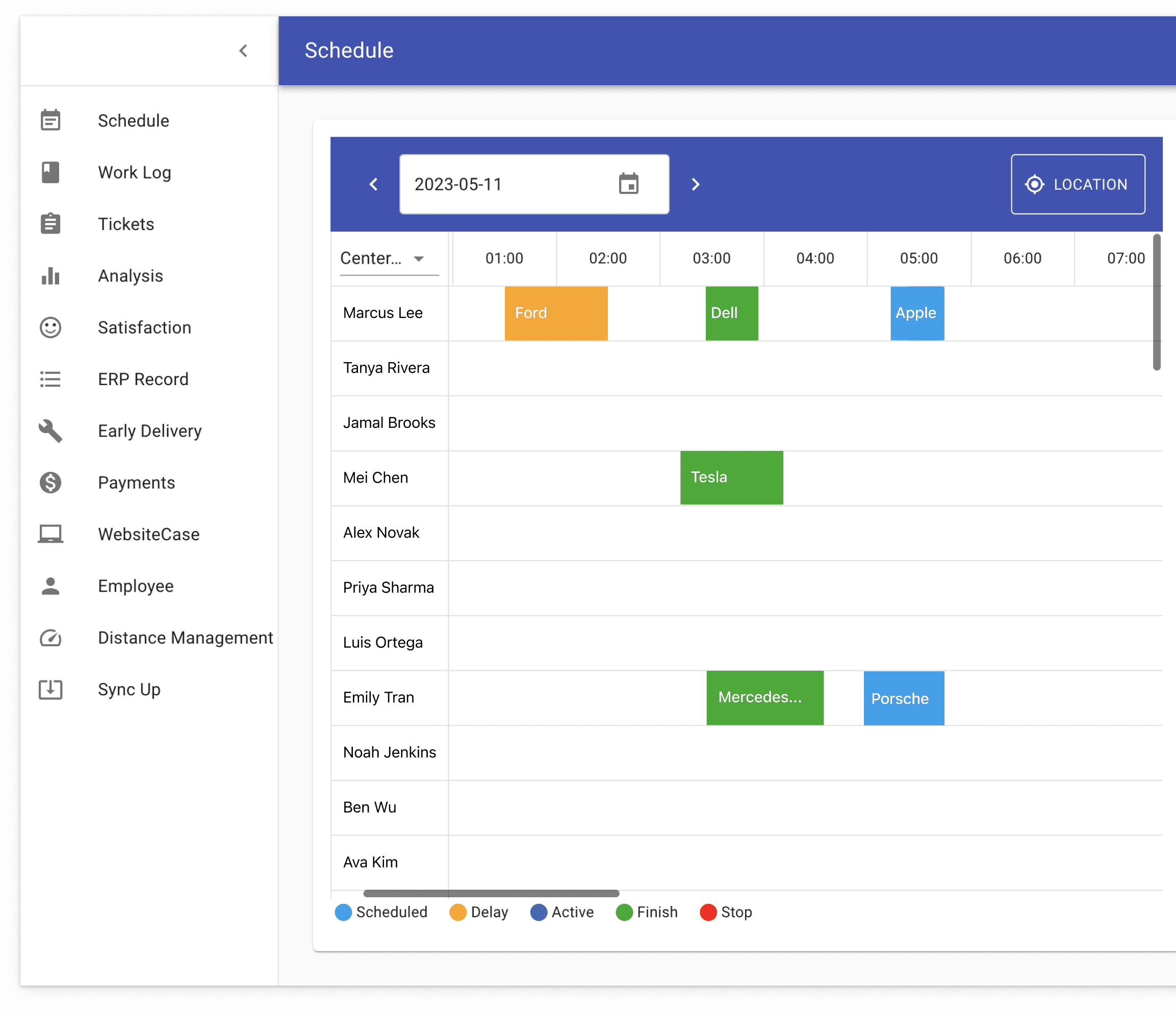 Displaying work cards in list view allows users to view their work schedule in time order. The most recent work would always be on the top.