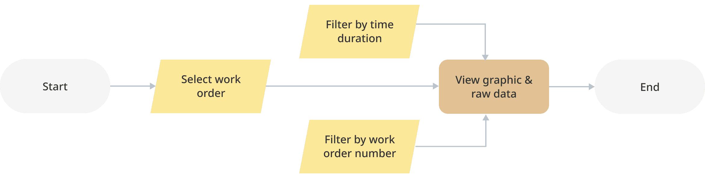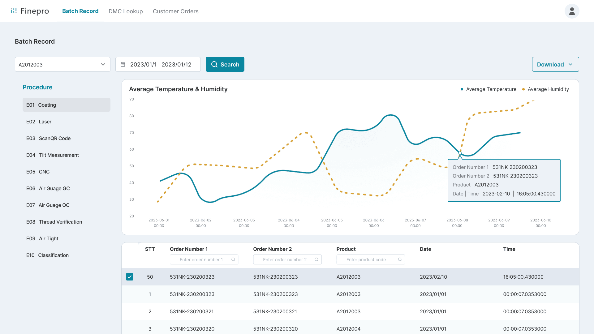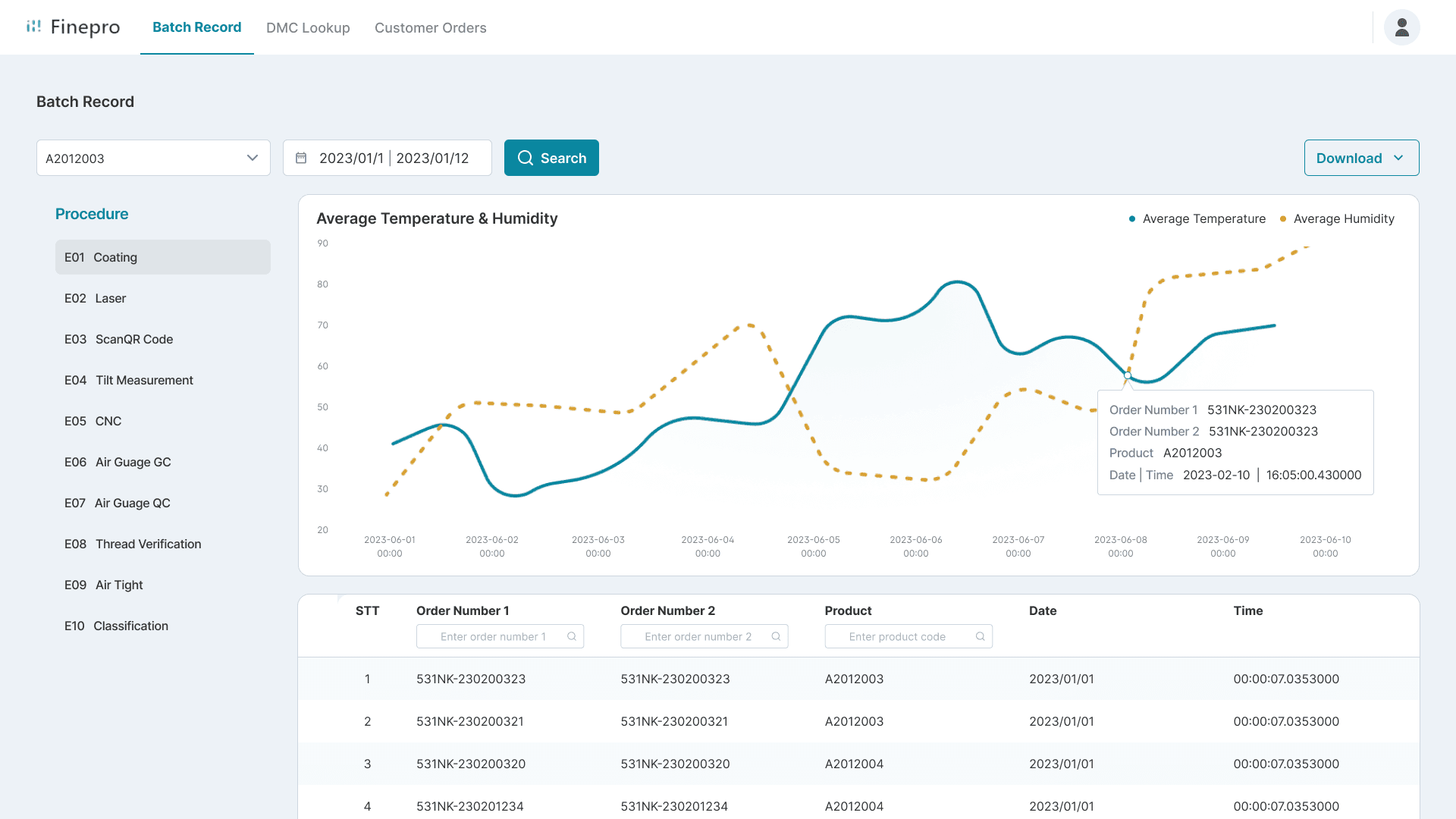 Internal staff can retrieve graph and raw data for past production record. The goal is to retrieve data for abnormalities within the production process.