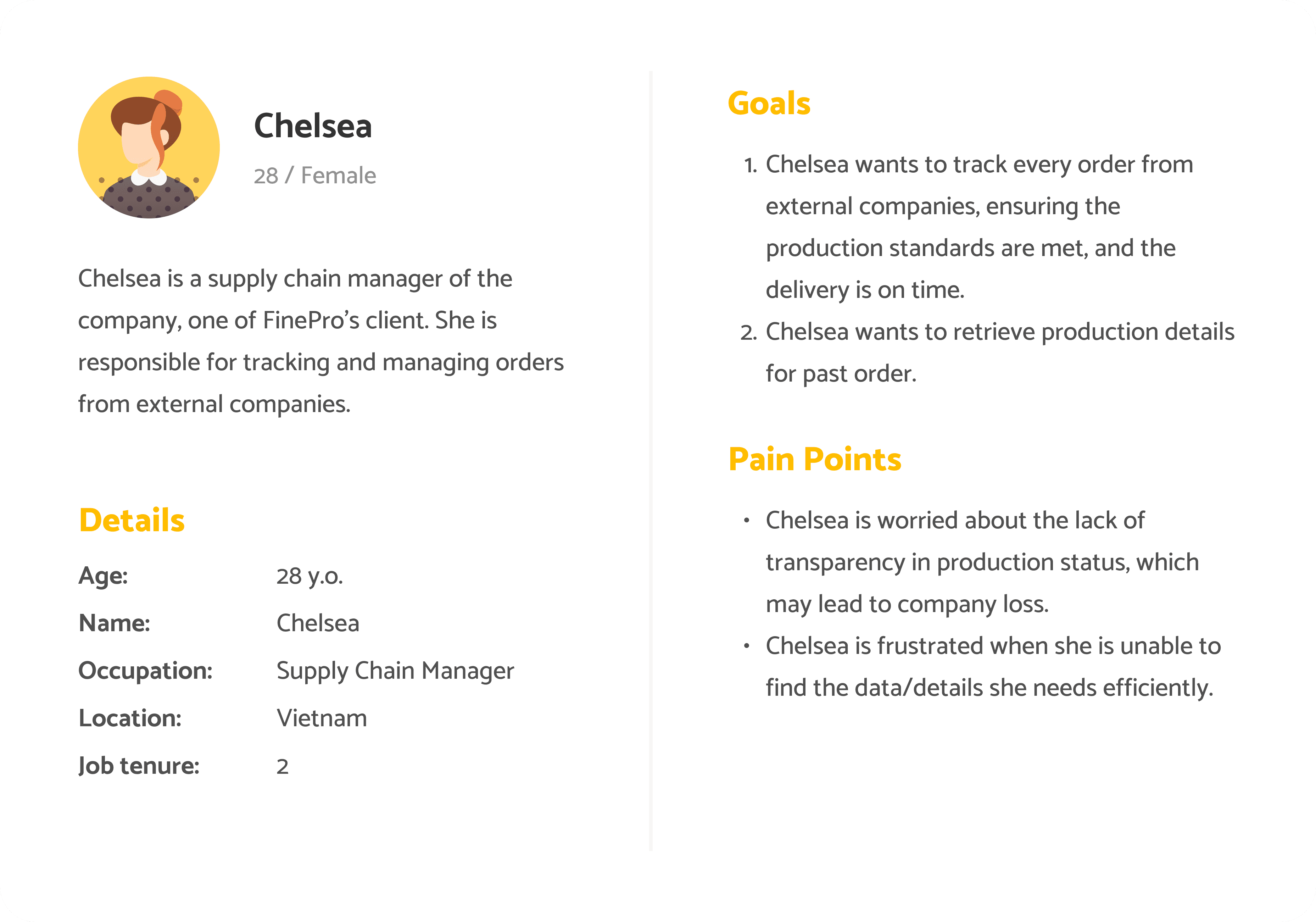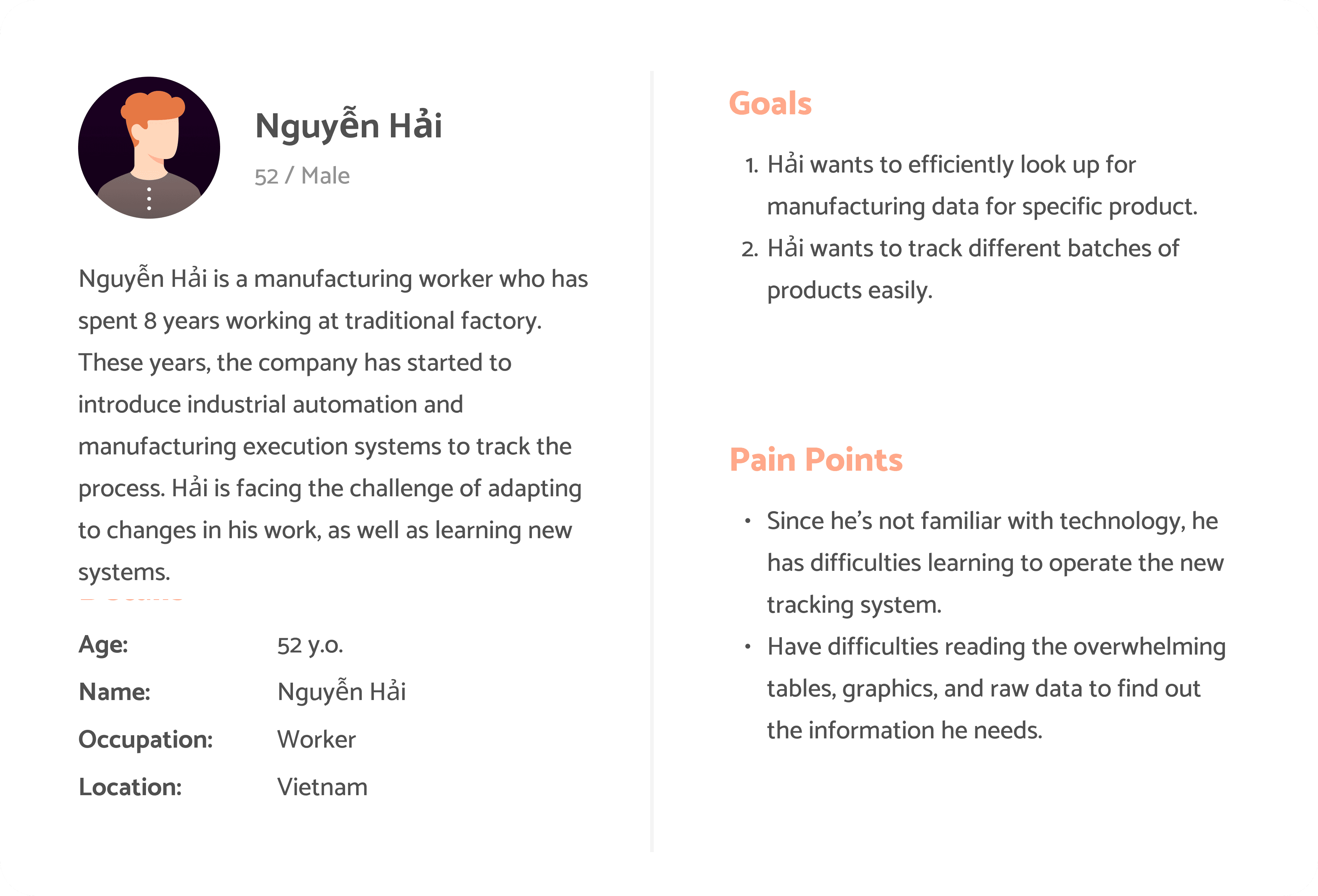 The internal production tracing tool is originally used by internal workers to retrieve production data for specific product and procedure. However, the current system has critical usability issues, resulting in low efficiency within the work flow . Moreover, the system is not meeting the latest business objectives and use case.