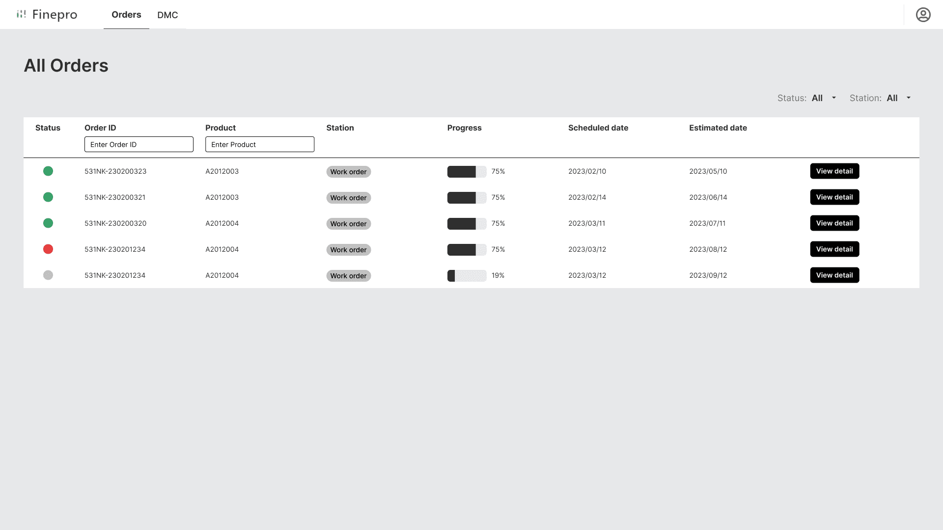 As a client, I want to view my order status and check if the production process meets standards.