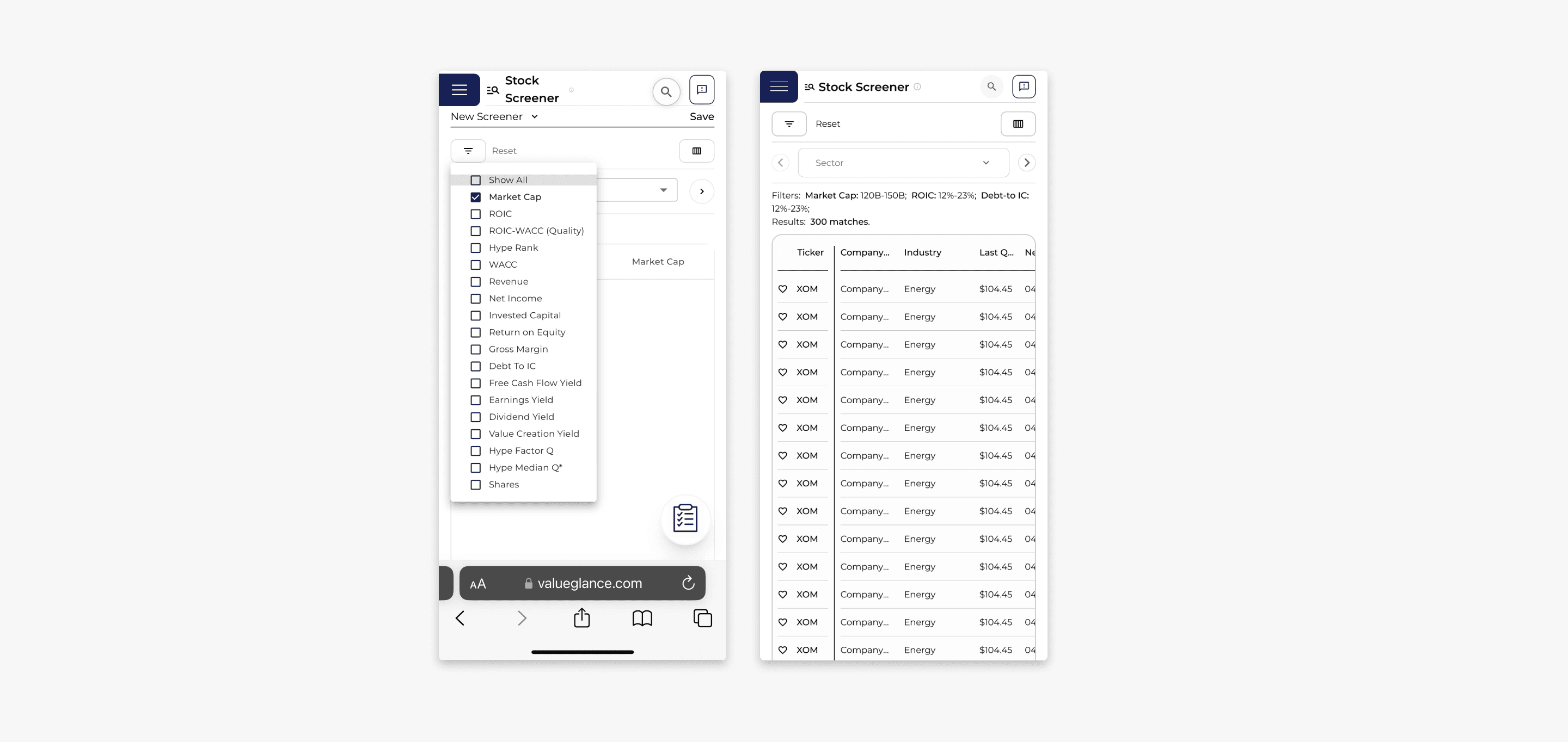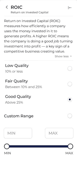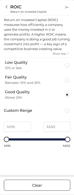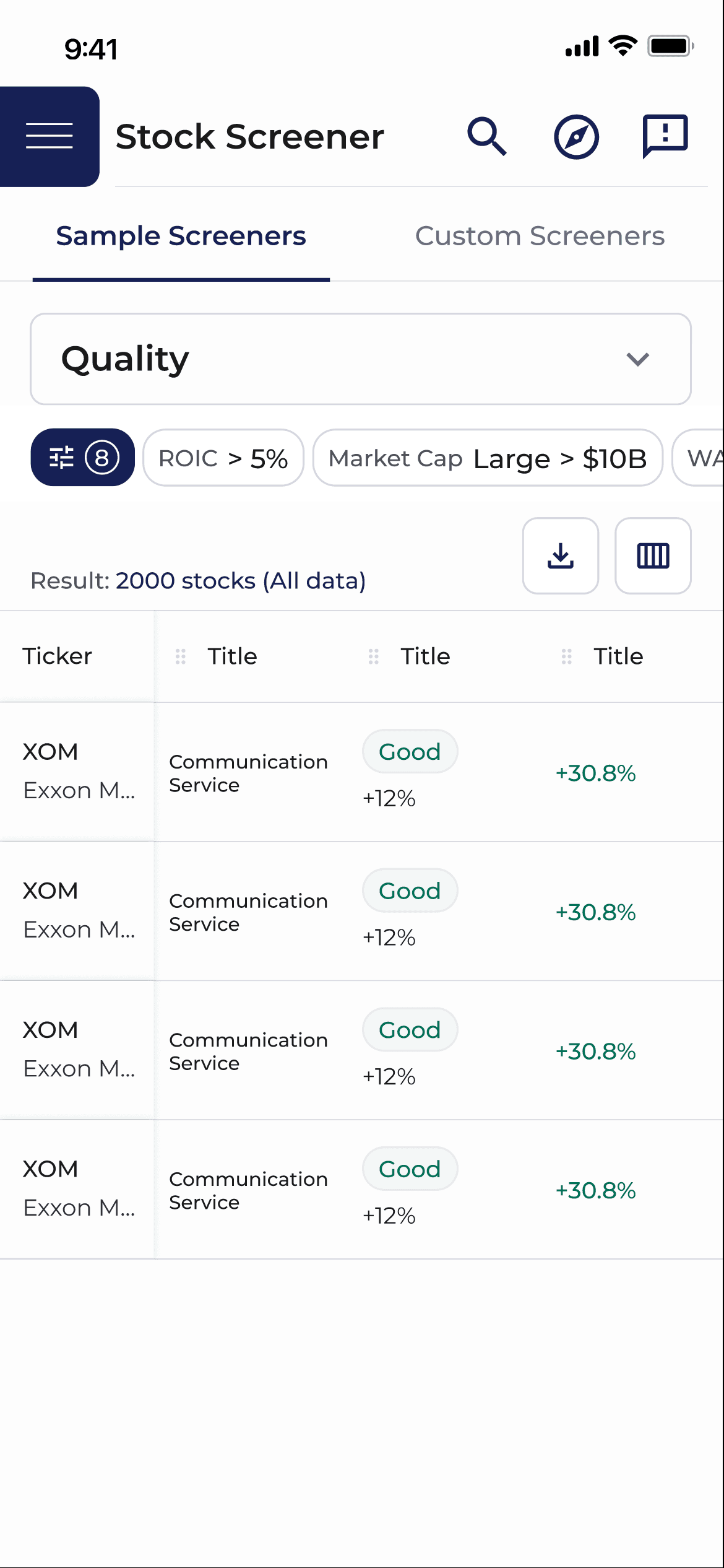 During usability testing, we discovered that while screening stocks, users struggled to choose the right filters, set meaningful ranges, and understand how each metric aligned with their investment goals. Once they received the results, many found it difficult to evaluate and compare stocks effectively.
