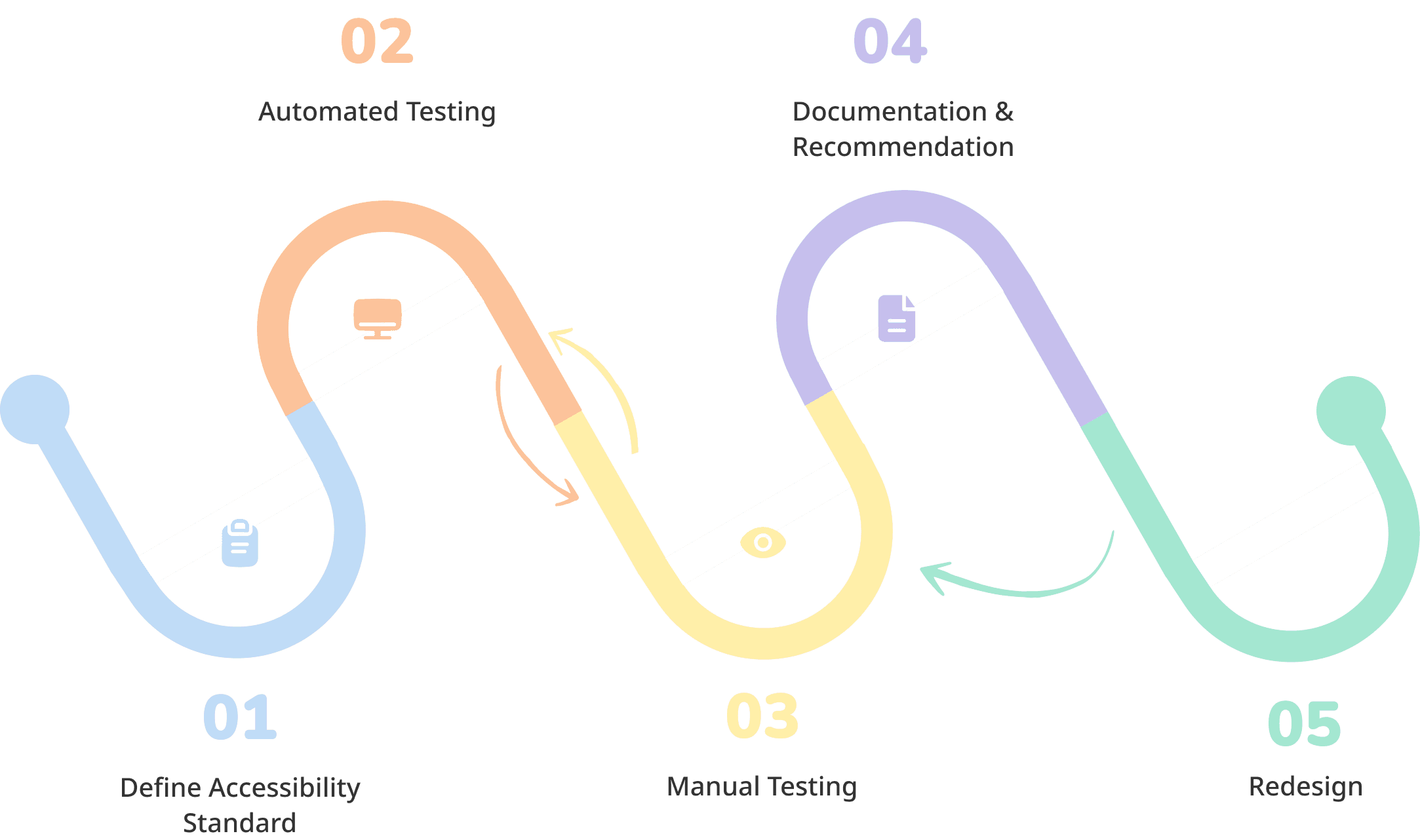For next step, it’s crucial to recruit users with disability to understand their real experience on the website and the pain points they have. Doing user research directly with the disabilities allows us to truly empathize with people’s conditions and understand their hidden story, leading us to design with a more inclusive mind.