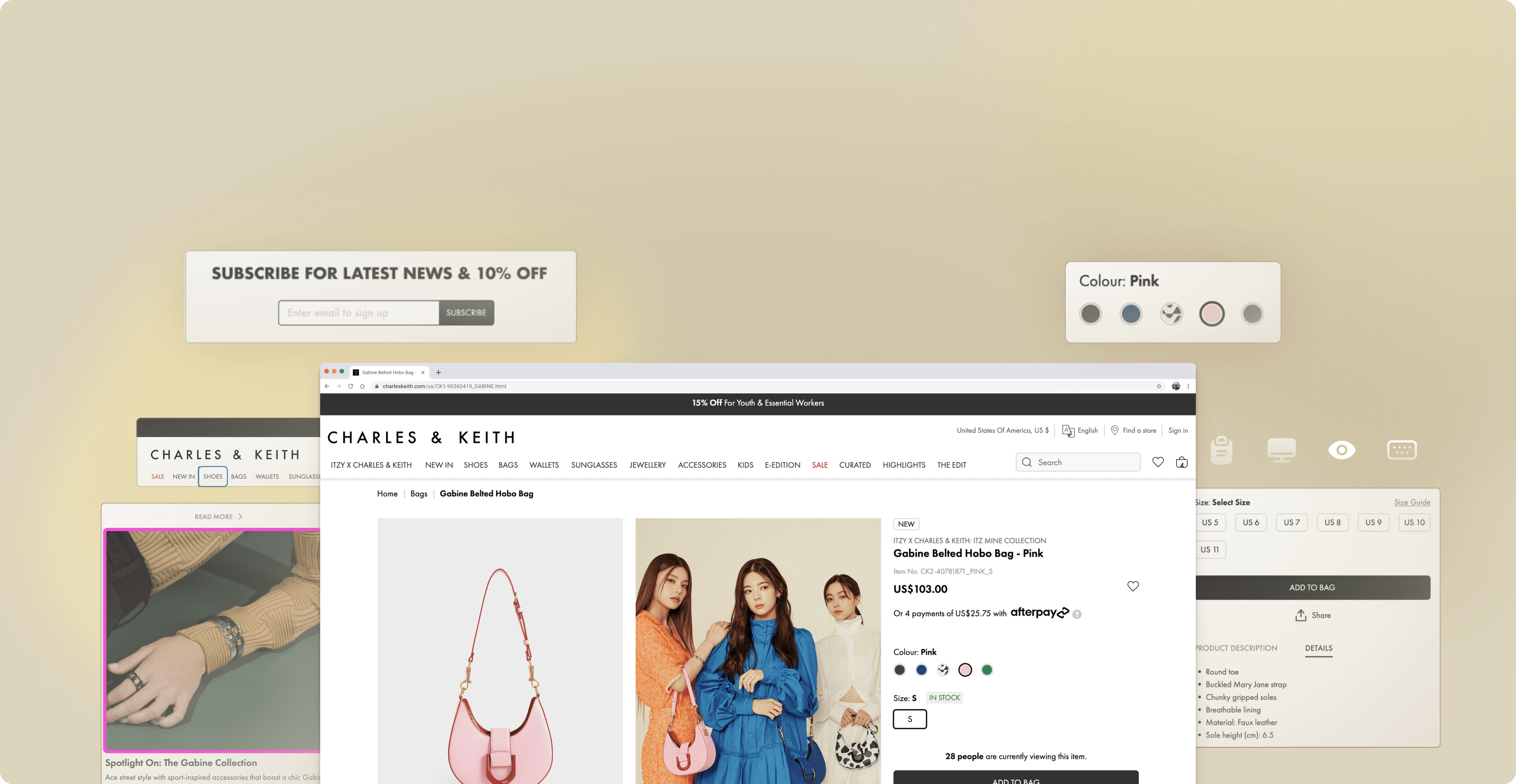 In this project, I evaluate CHARLES & KEITH US, a website for shopping shoes, bags, and accessories, not only because I am a user, but also I found some accessibility issues when doing the first easy check. I focus on the homepage and product page.
